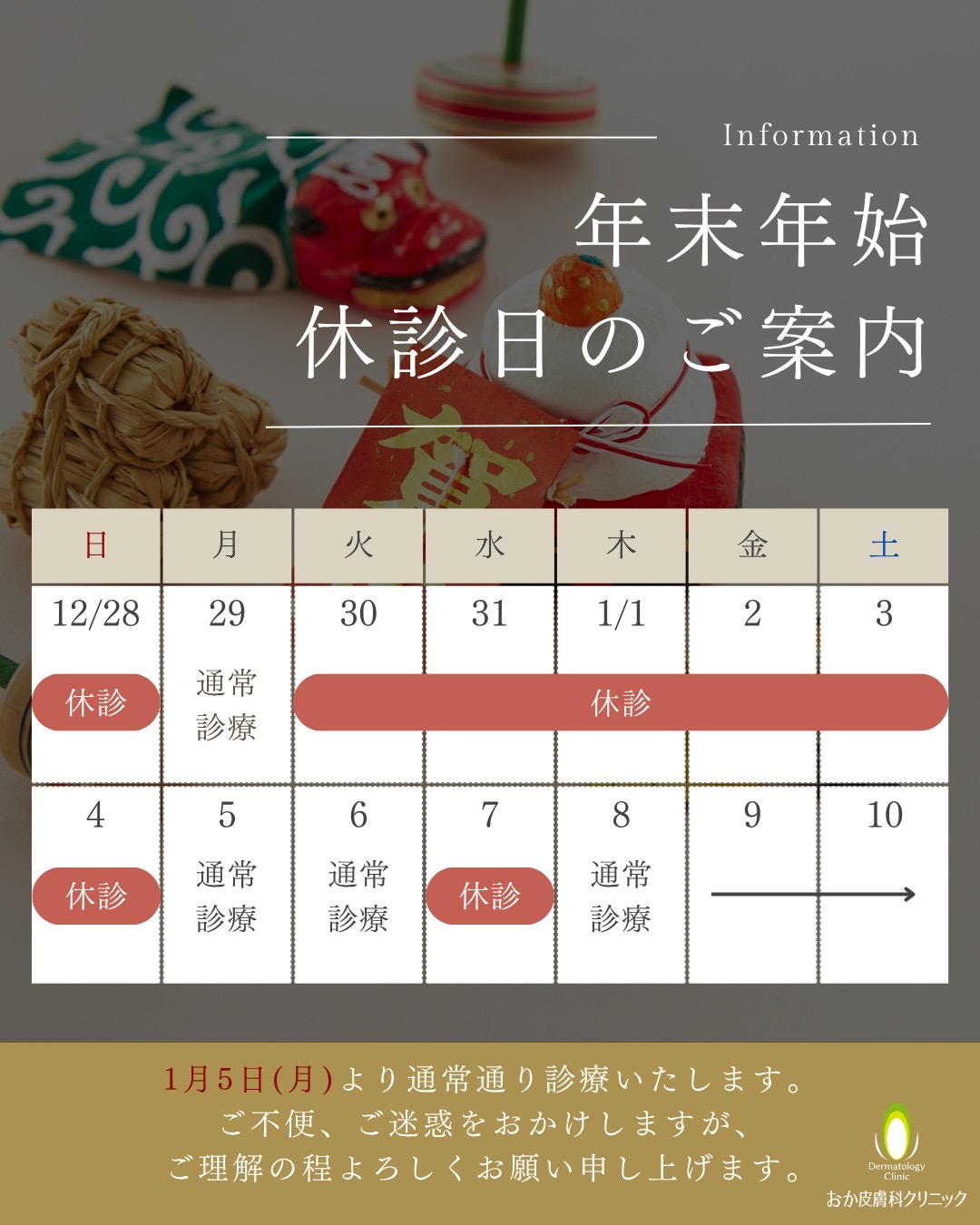 年末年始診療日のご案内